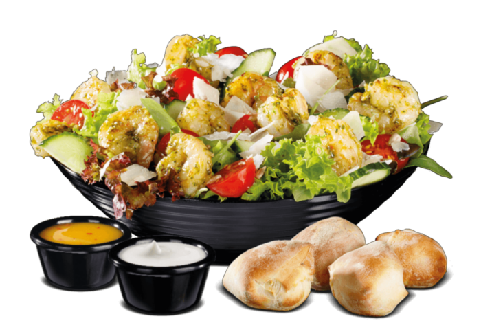 (Black Tiger GarnelenB, Basilikum Pesto E,H, Grana Padano ,G, Körnermischung bestehend aus: Pinien-, Sonnenblumen-. und Kürbiskernen, Salatbrötchen A,A1)