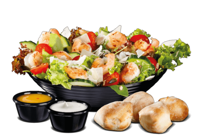 (Black Tiger Garnelen B, Grana PadanoG, Körnermischung bestehend aus: Pinien-, Sonnenblumen-. und Kürbiskernen, Salatbrötchen A,A1)