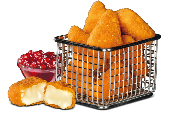 10 Stück Brie-Spitzen aus zartschmelzendem Käse, umhüllt von einer knackigen Panade mit Preiselbeer-Dip