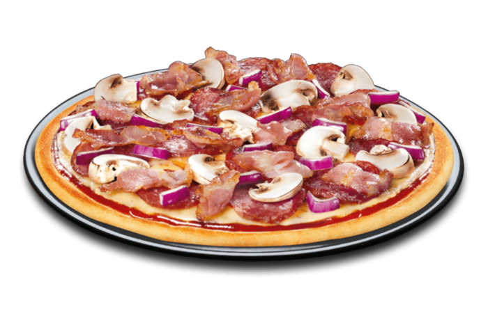 (PizzateigA,A1, Salami1,2,3,J, Bacon2,3,8, Gouda-Käse1,G)