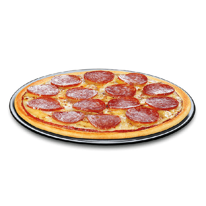 mit frischem Pizzateig, Tomatensauce, Salami & leckerem Gouda-Käse