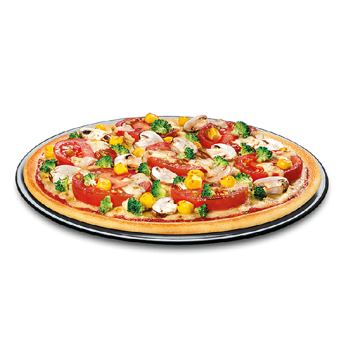 mit frischem Pizzateig, Tomatensauce, Tomaten, Mais, Brokkoli, Champignons & leckerem Gouda-Käse