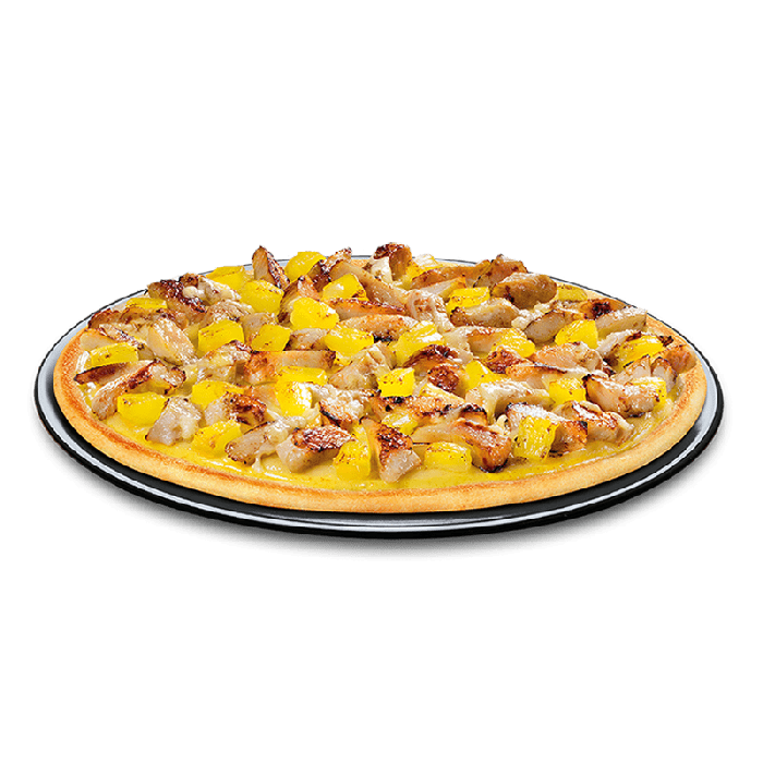 mit frischem Pizzateig, Hähnchenbruststreifen, Ananas,