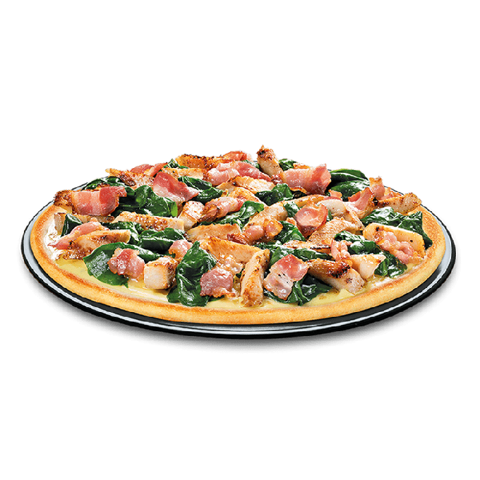 mit frischem Pizzateig, Hähnchenbruststreifen, Würfelbacon,