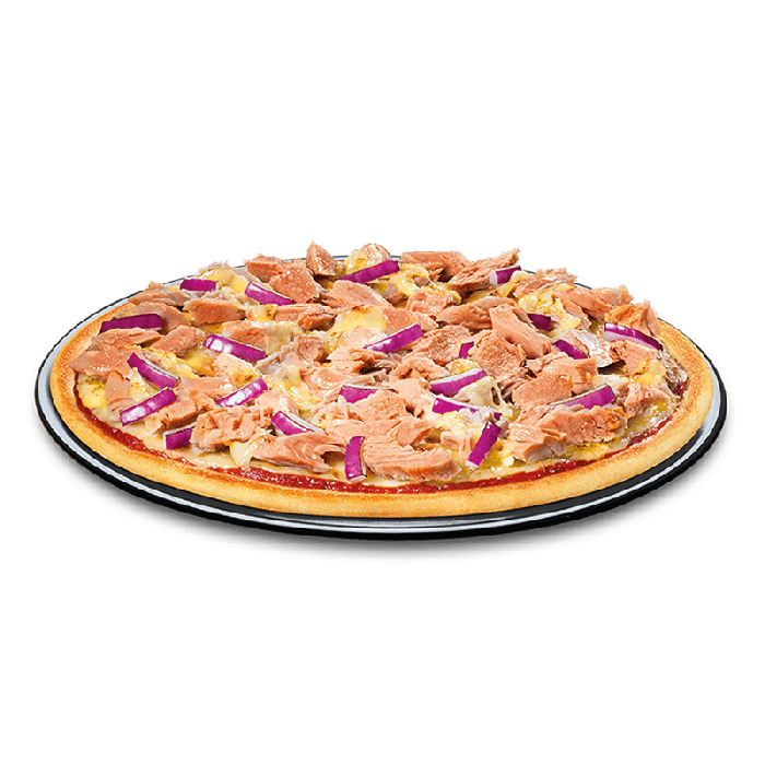 mit frischem Pizzateig, Tomatensauce, Thunfisch, Zwiebeln & leckerem Gouda-Käse