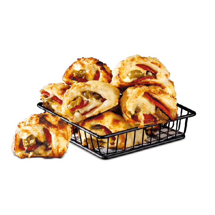 frischer Pizzateig mit Salami, Jalapeños und Gouda-Käse gefüllt