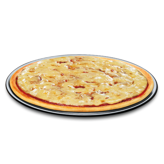 mit frischem Pizzateig, , Tomatensauce und veganem Reibeschmelz